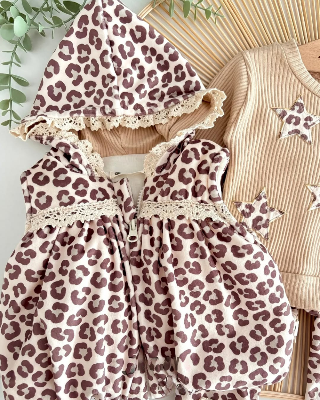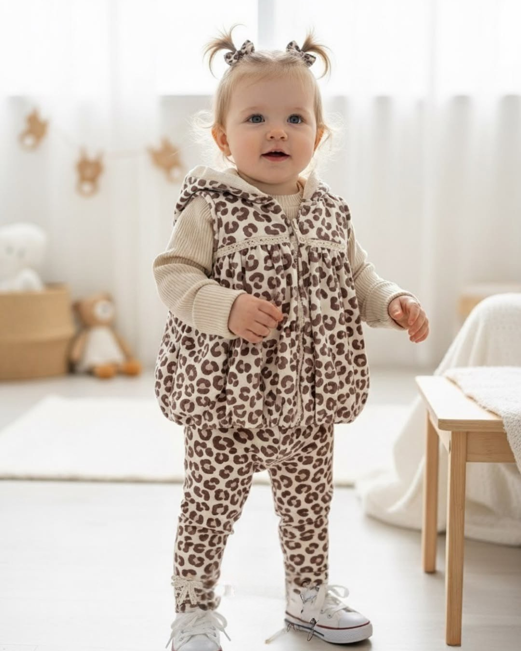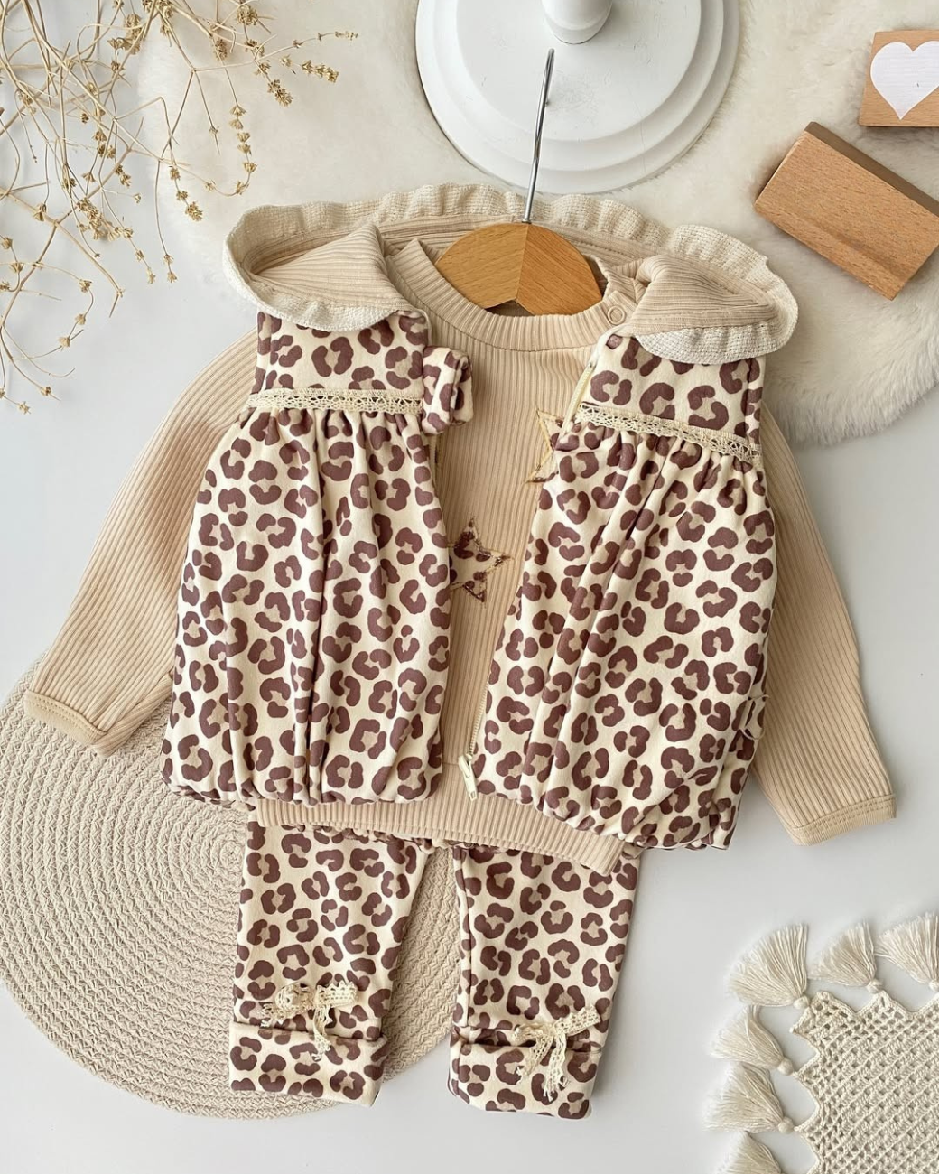 طقم بيبي بناتي – 3 قطع بتصميم ليوبارد أنيق