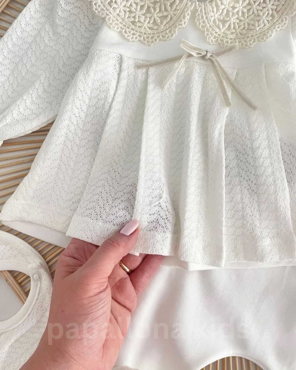 طقم بيبي بنات ناعم – بتصميم دانتيل فاخر (5 قطع)
