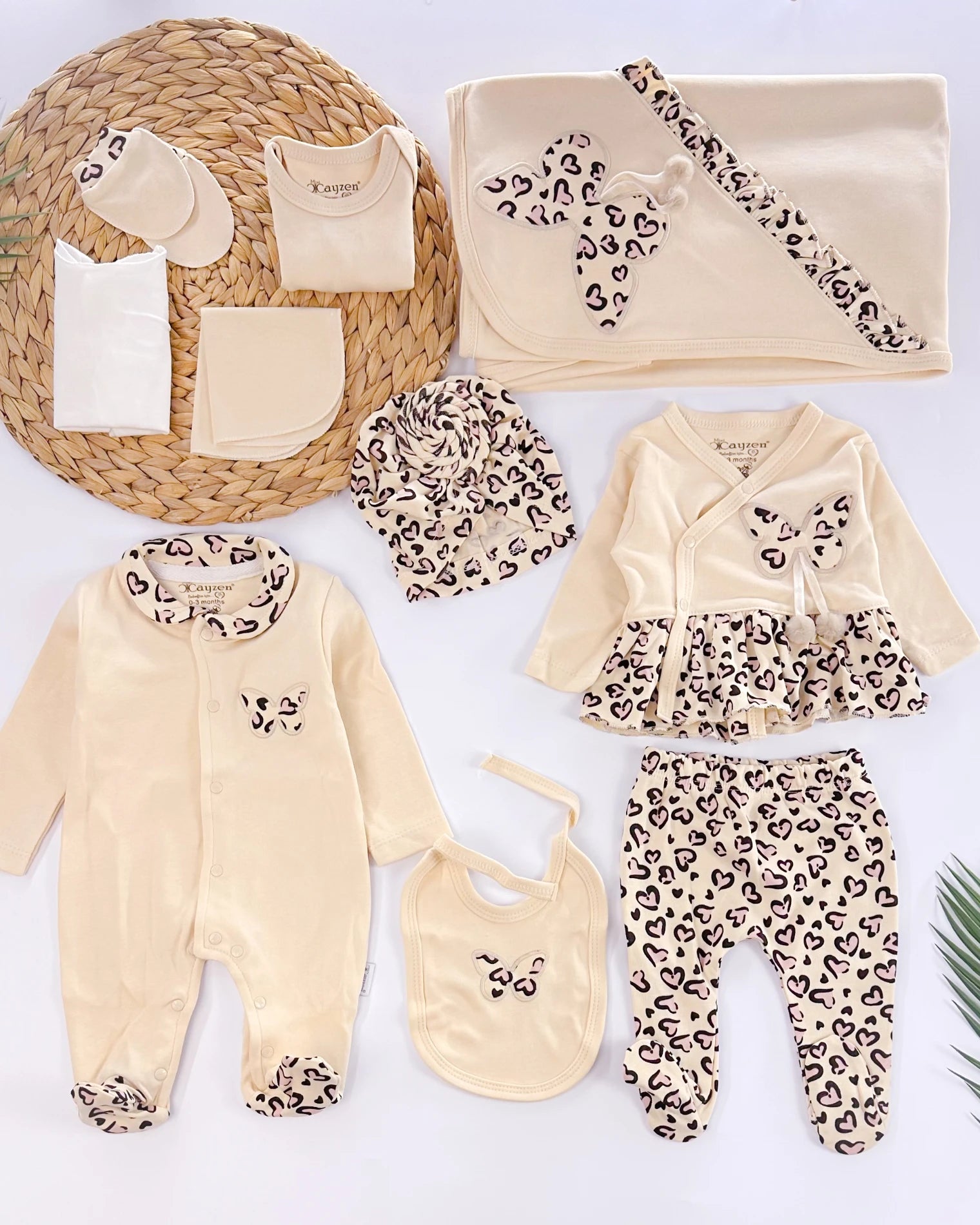 طقم مواليد بناتي كامل 10 قطع – ستايل كيوت وناعم