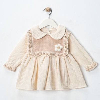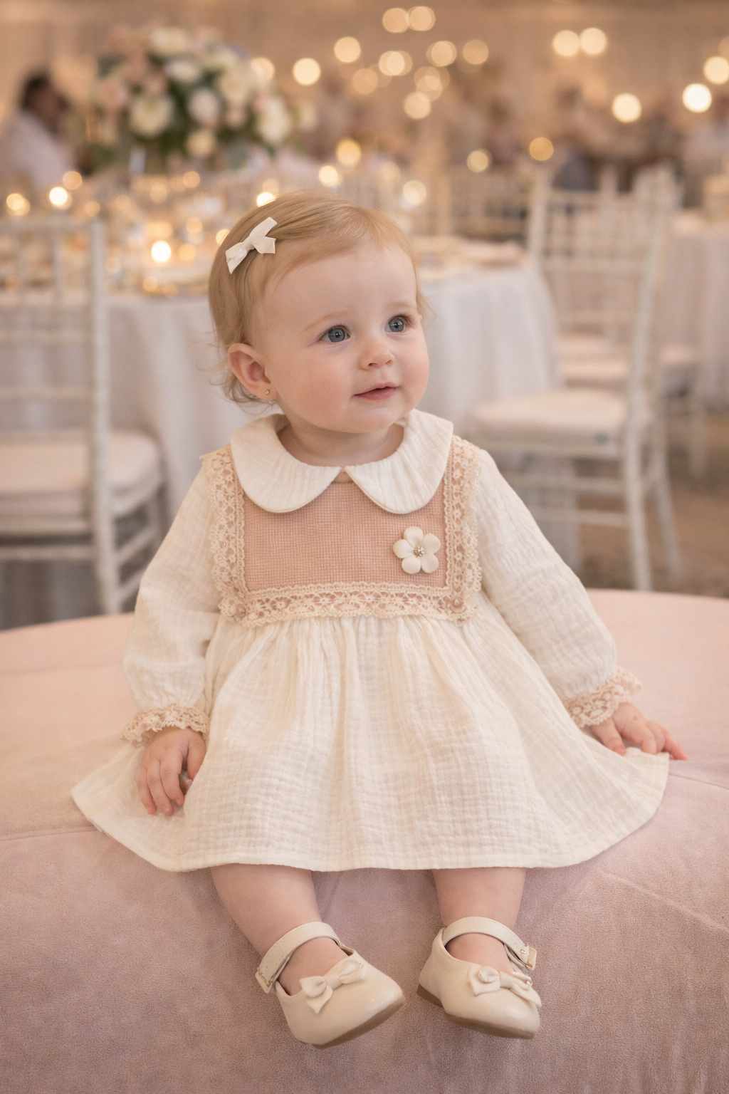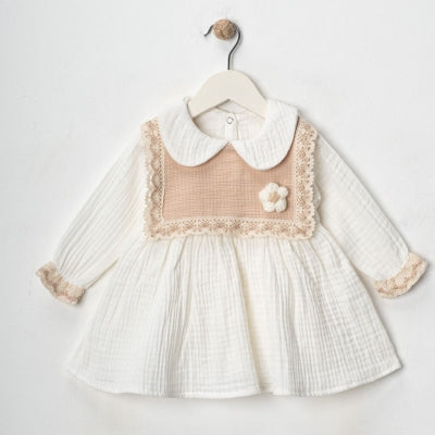 فستان طفلة فاخر بلون أوف وايت مع دانتيل أنيق