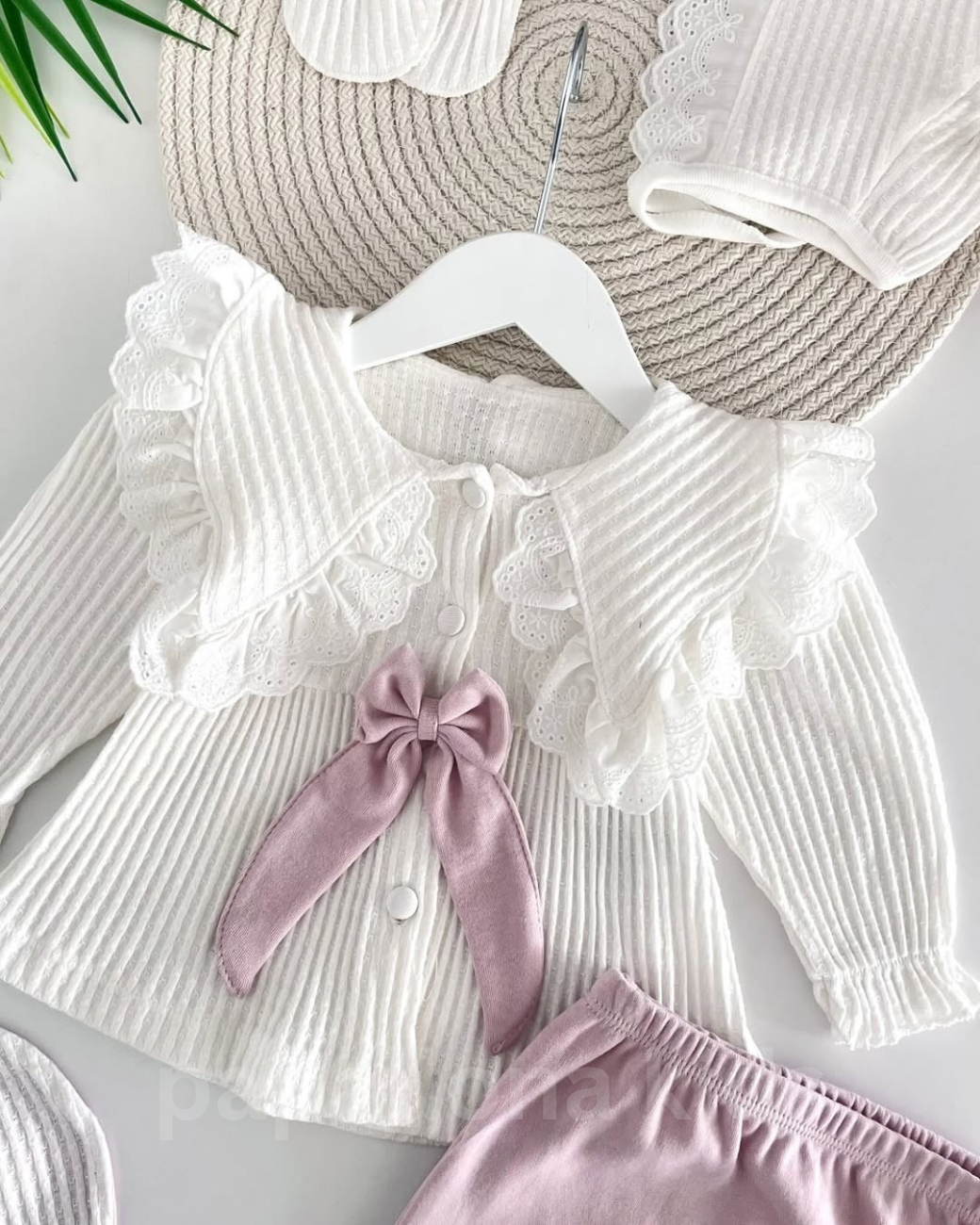 طقم بيبي بناتي 5 قطع بالفيونكة والدانتيل 🎀فاخرة