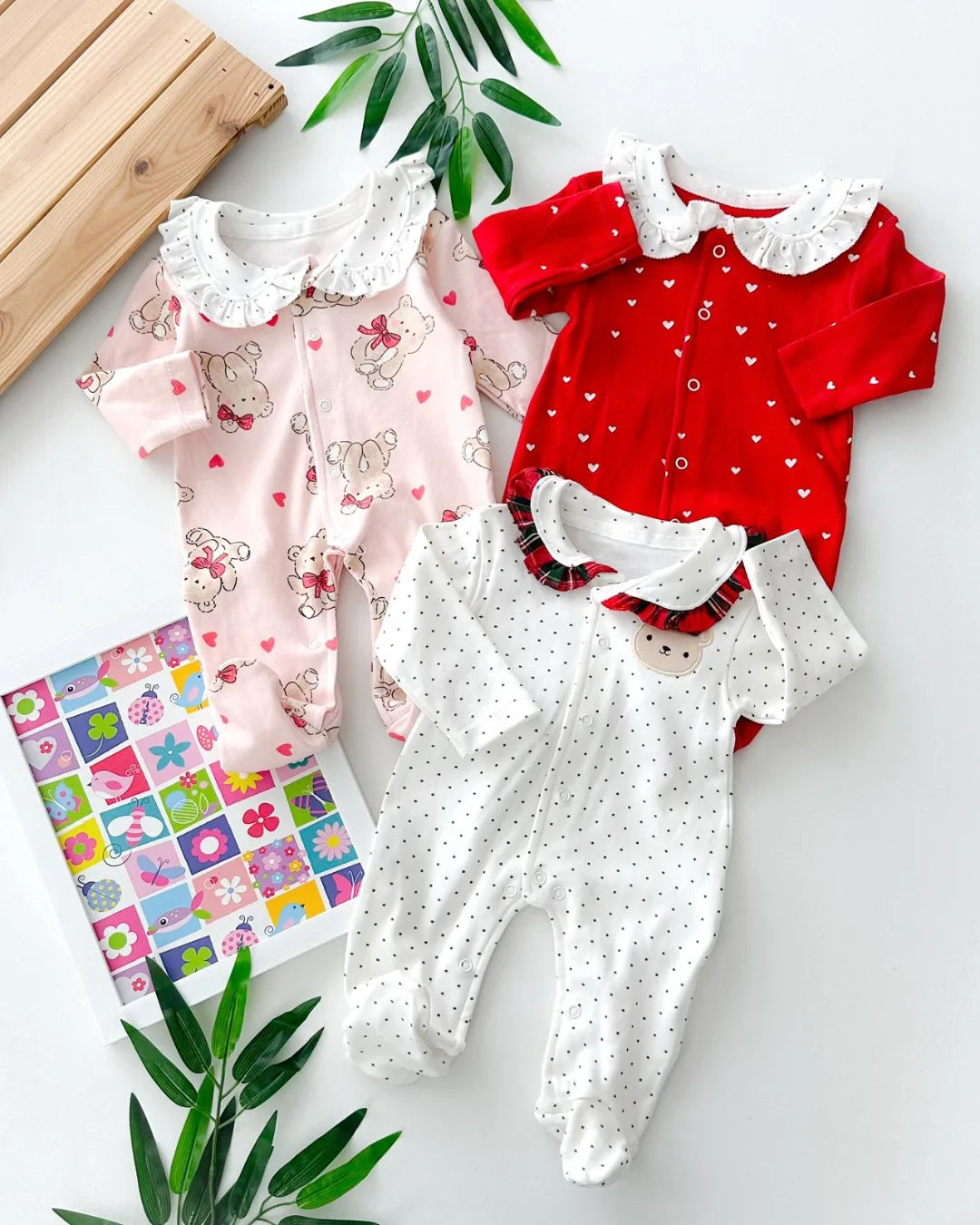 • باك جامبسوت بناتي من القطن الناعم – 3 قطع بتصاميم قلوب ودببة لطيفة