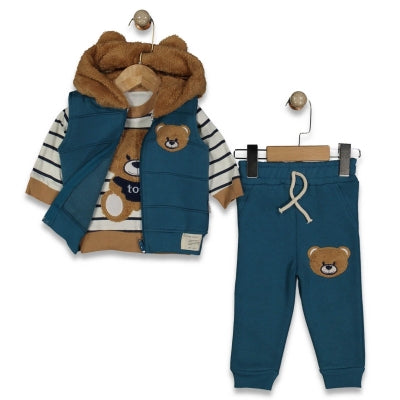 طقم 3 قطع أنيق للأولاد: كنزة، بنطال، وسترة (6-18 شهر)