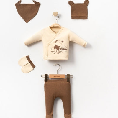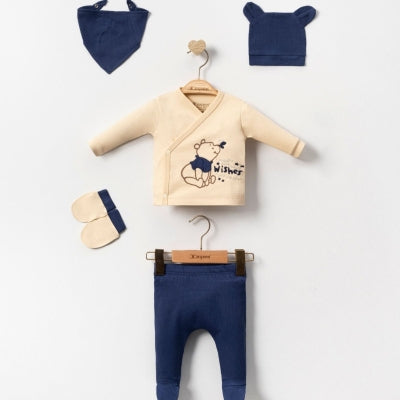 🧵 طقم بيبي قطن 100% بطبعة ويني الدب – تصميم ناعم ومريح