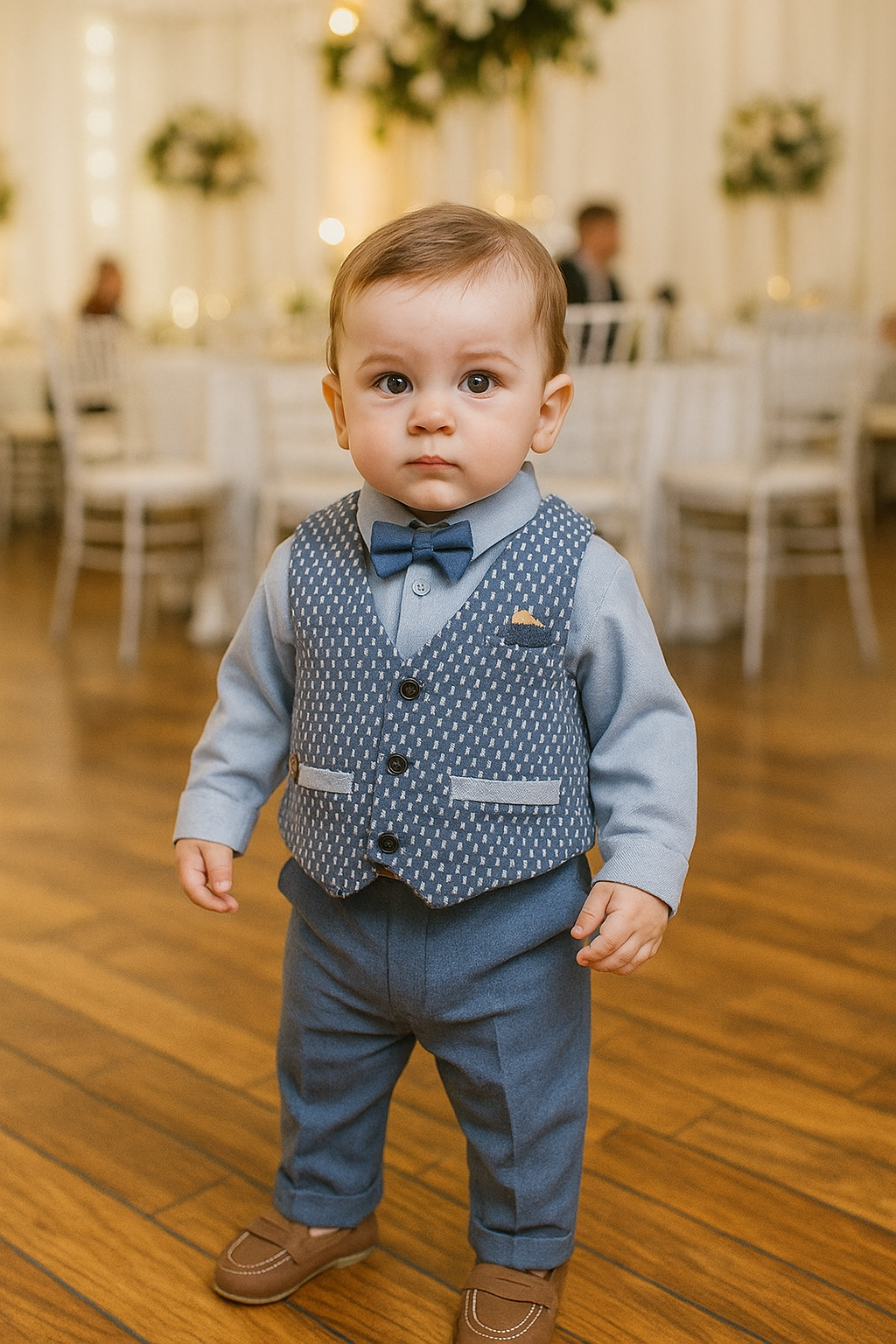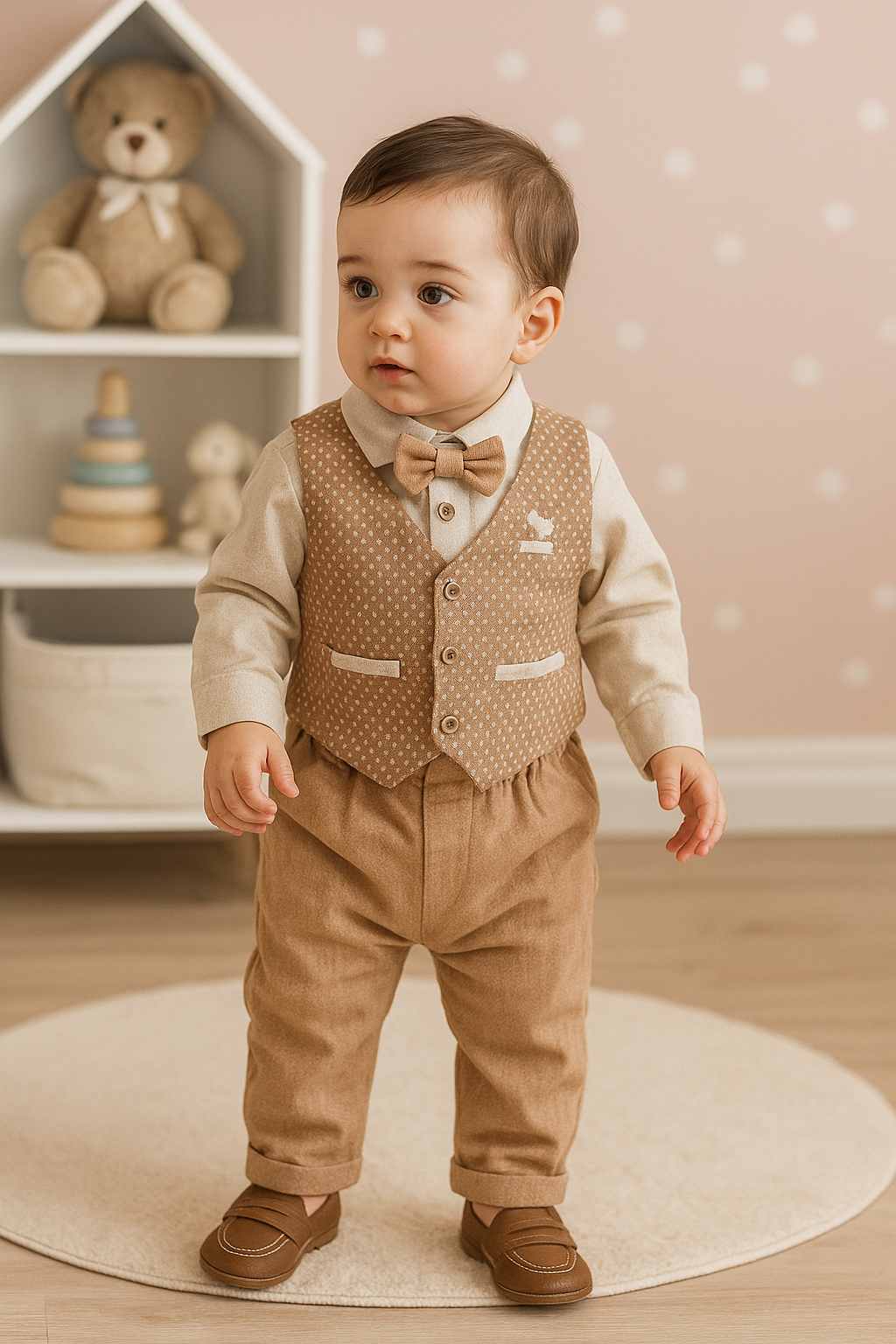 طقم طفل رضيع مكون من 4 قطع مع صدرية وقميص وبنطال وحذاء