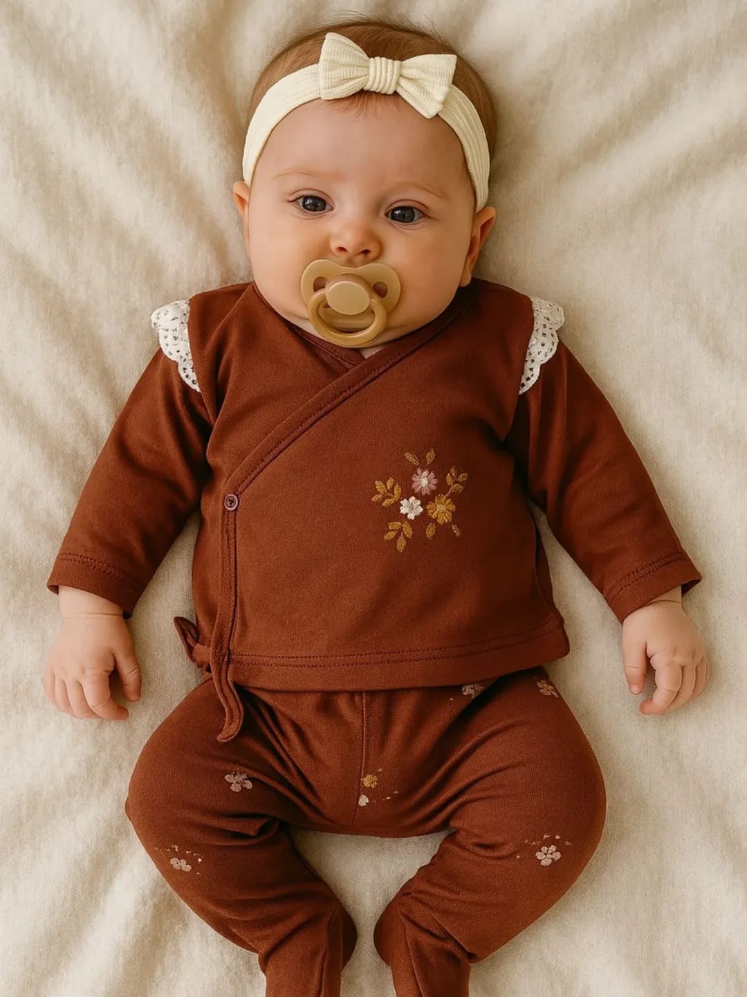 • طقم بيبي بناتي 5 قطع باللون البني المزهر