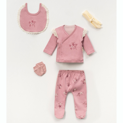 طقم بيبي بناتي 5 قطع باللون البني المزهر