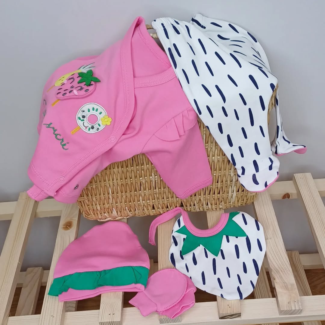 طقم 5 قطع لحديثي الولادة للبنات الرضع من 0-3 شهور طقم 5 قطع لحديثي الولادة للبنات الرضع من 0-3 شهور