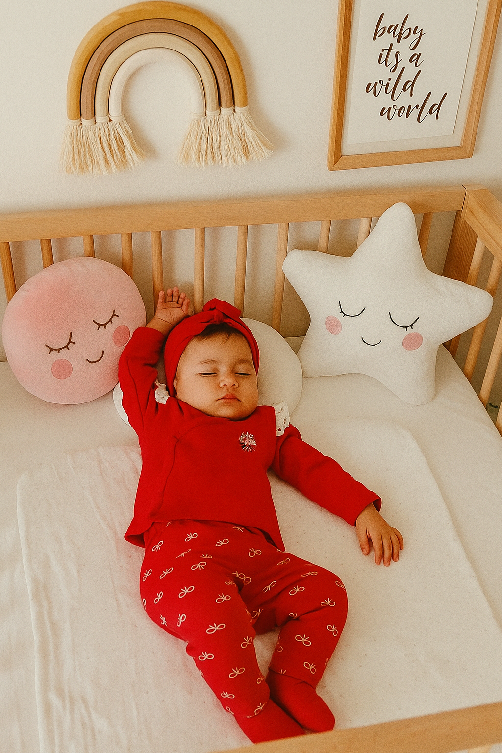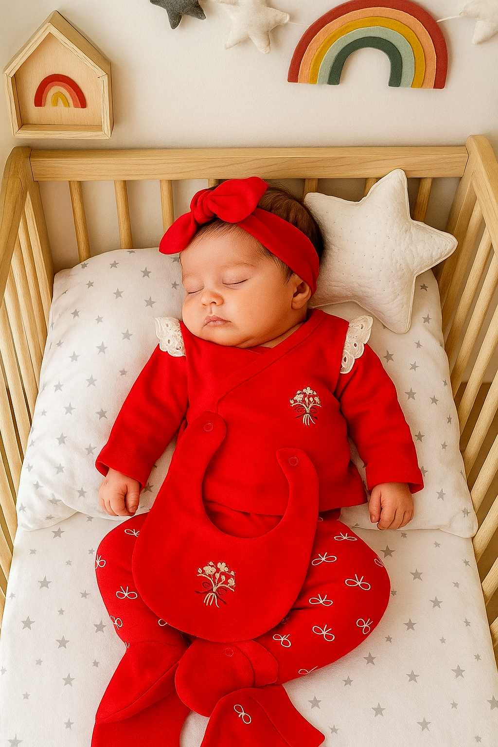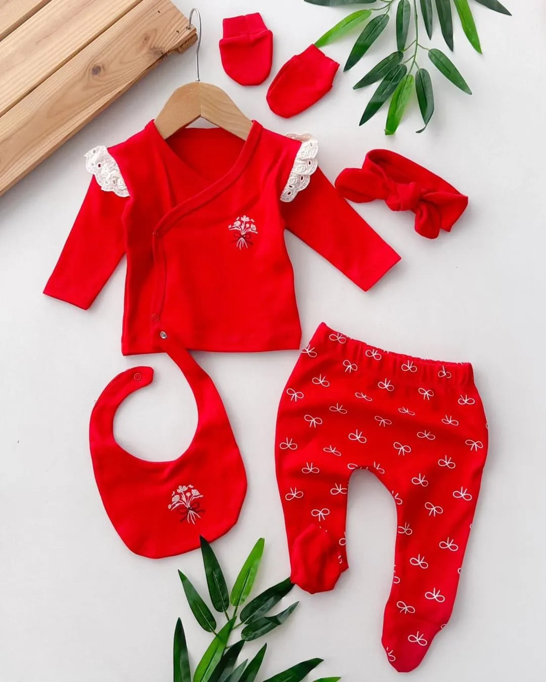 • طقم بيبي بناتي 5قطع باللون الأحمر المشرق