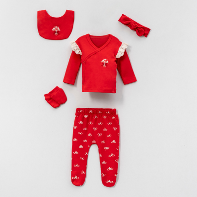 طقم بيبي بناتي 5قطع باللون الأحمر المشرق