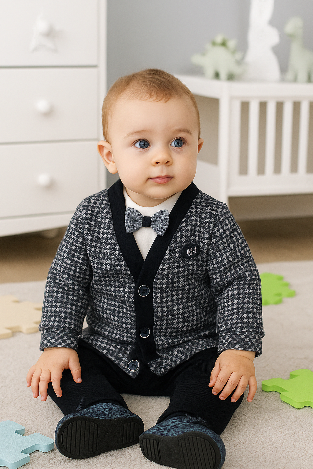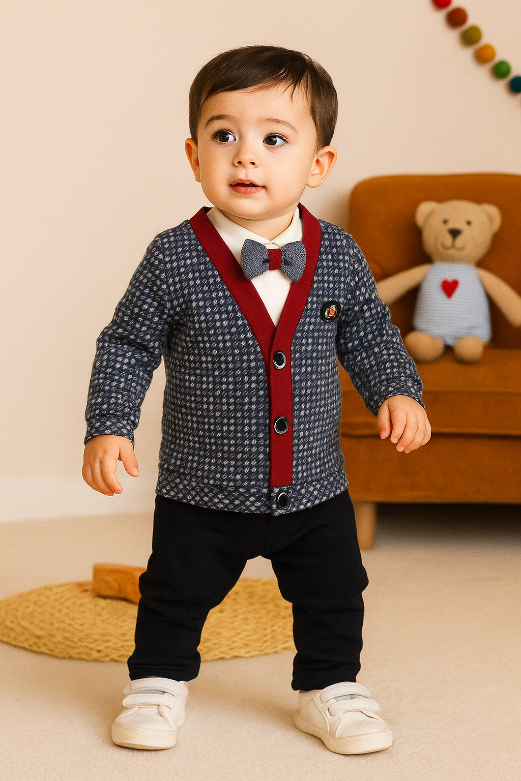 طقم مكون من 3 قطع لطفل رضيع بتصميم ربطة عنق على شكل عقدة عنق