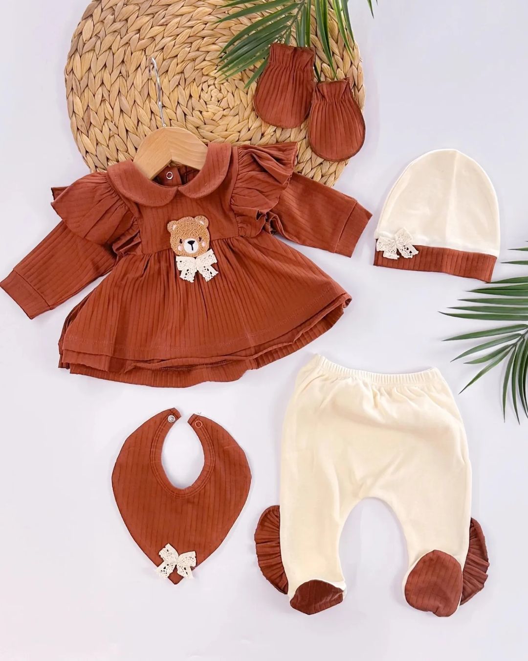 • طقم 5 قطع لحديثي الولادة للبنات الرضع من 0-3 شهور