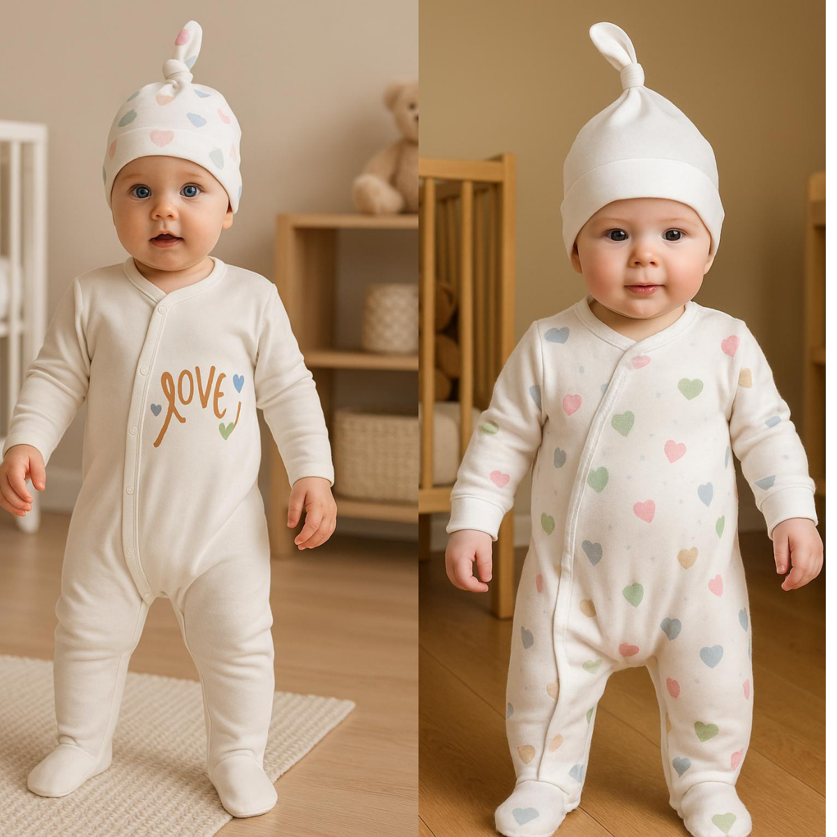 • طقم بيبي 2 قطع قطن ناعم – ستايل قلوب