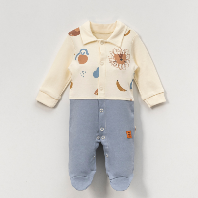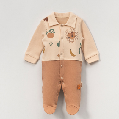 طقم بيبي من قطعتين بألوان طبيعية وتصميم  مرح