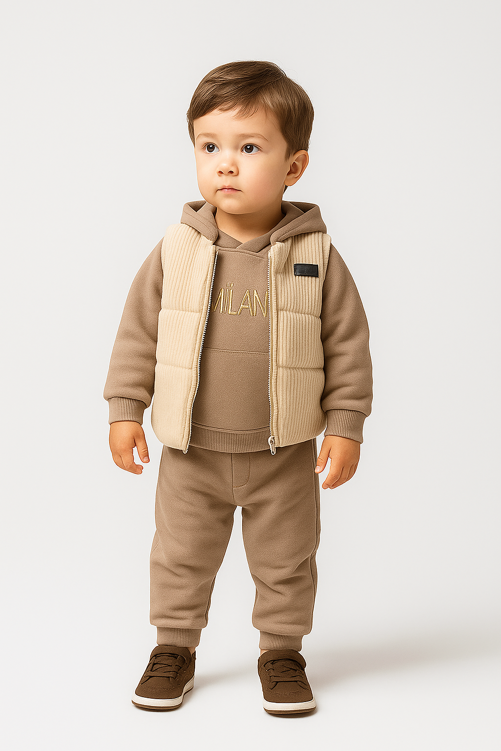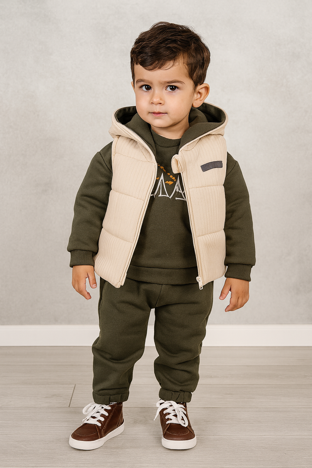 • طقم بيبي شتوي أنيق بصديري مبطن