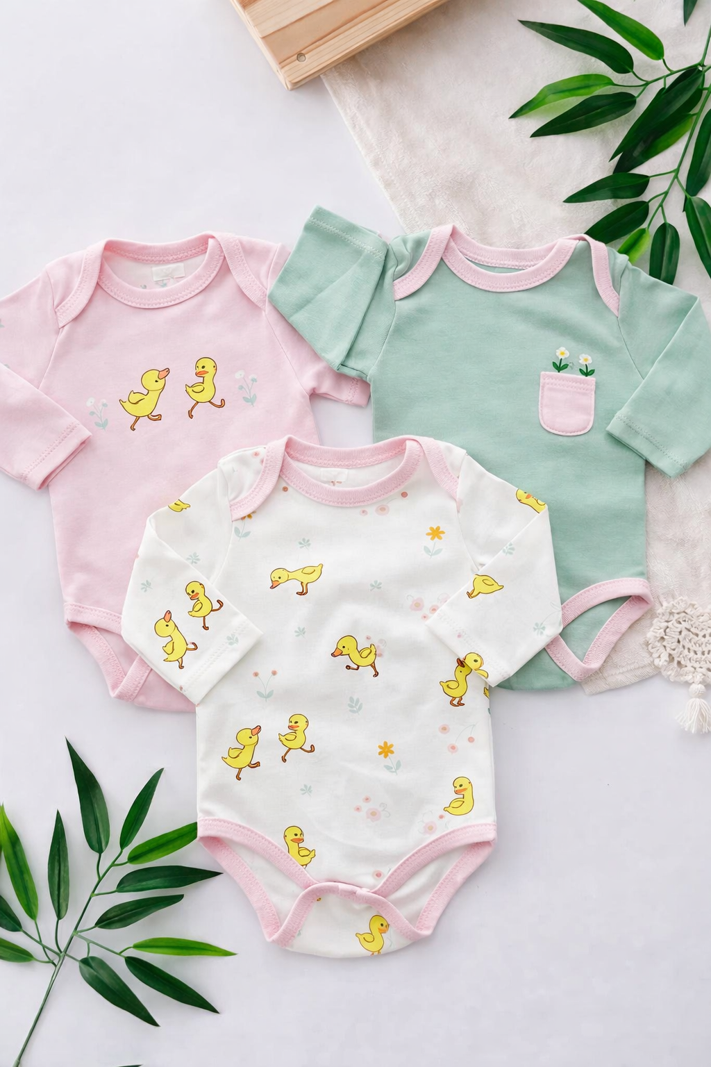 طقم بودي 3 قطع برسمة البط – قطن ناعم ومريح