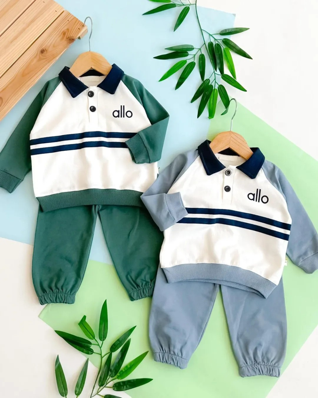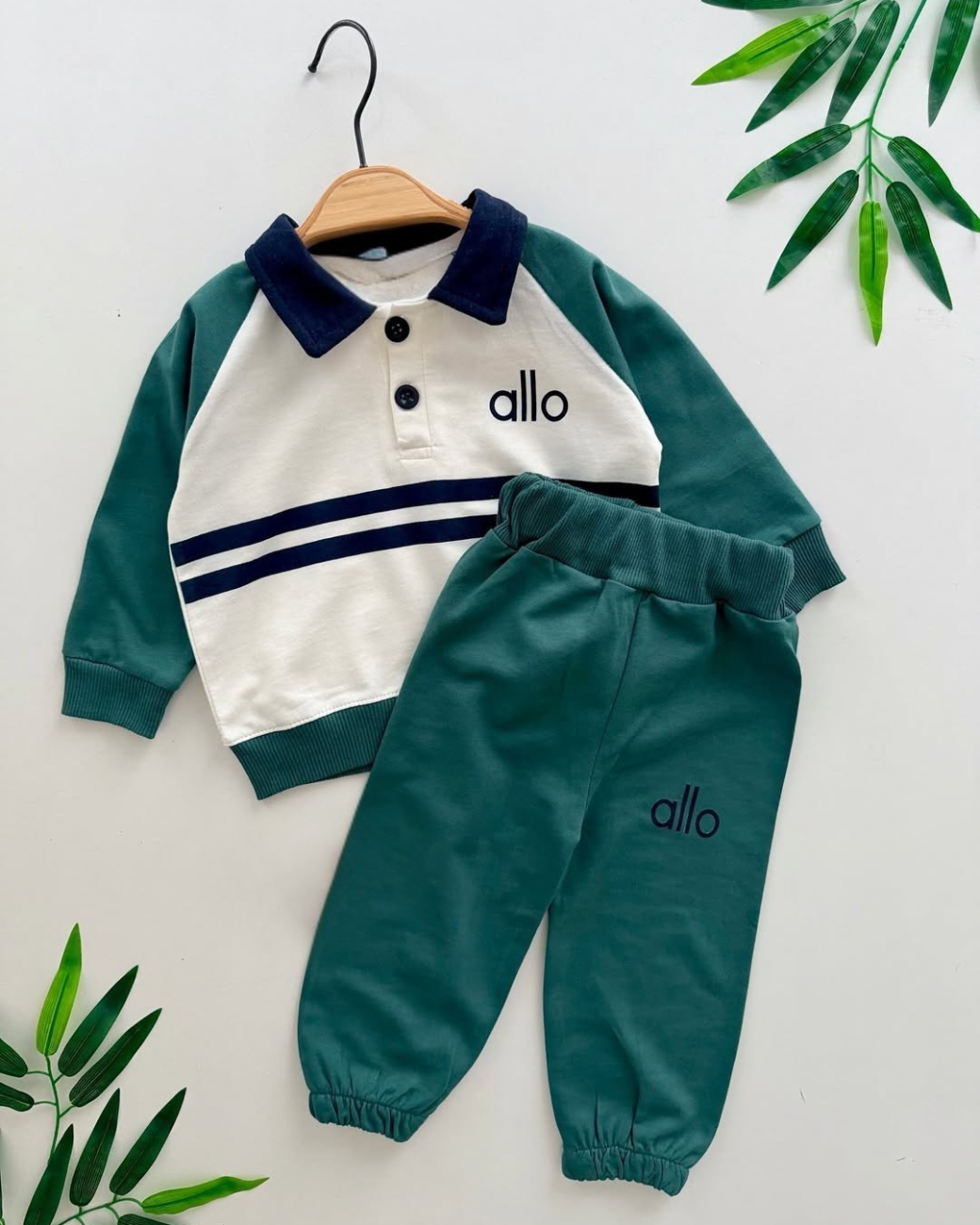 • طقم أطفال أنيق قطعتين – كنزة بياقة بولو وبنطال مريح بتصميم عصري (ALLO)