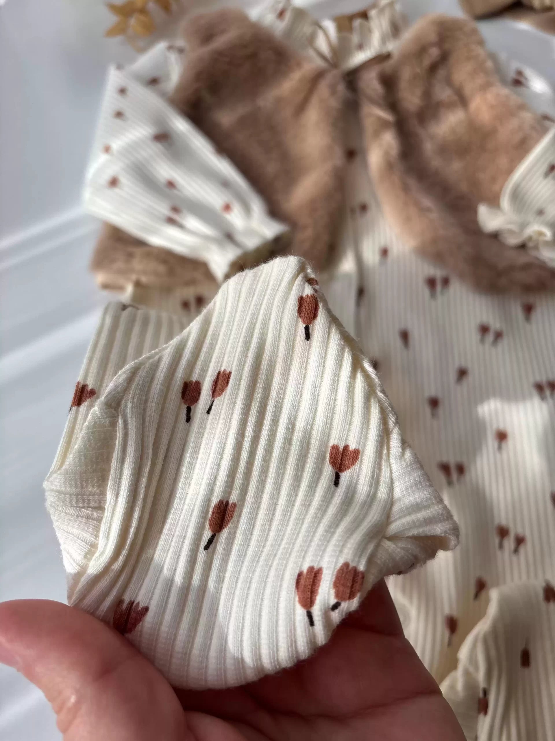 طقم أطفال حديثي الولادة مكون من 5 قطع مع سروال للجسم وقبعة وقفازات 0-3 شهور