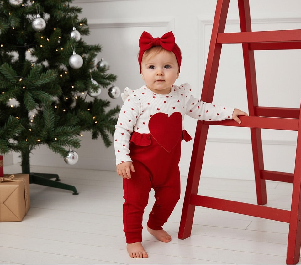 • طقم بناتي بتصميم قلوب وفيونكات أنيقة