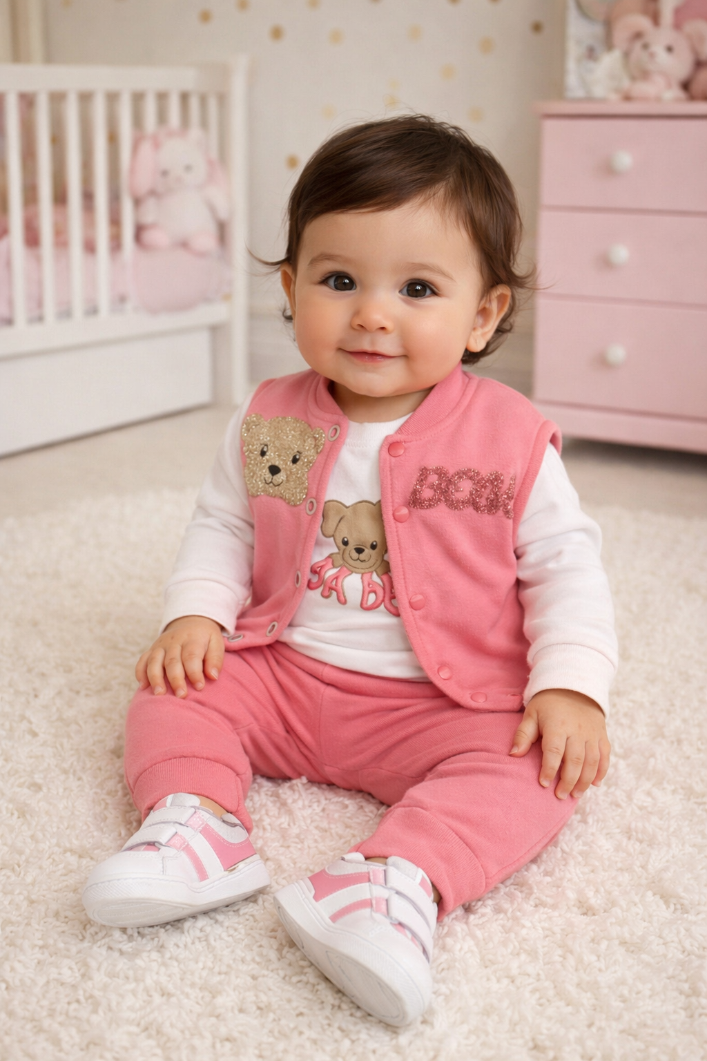 طقم شتوي – 3 قطع بتصميم عصري ولون وردي ناعم