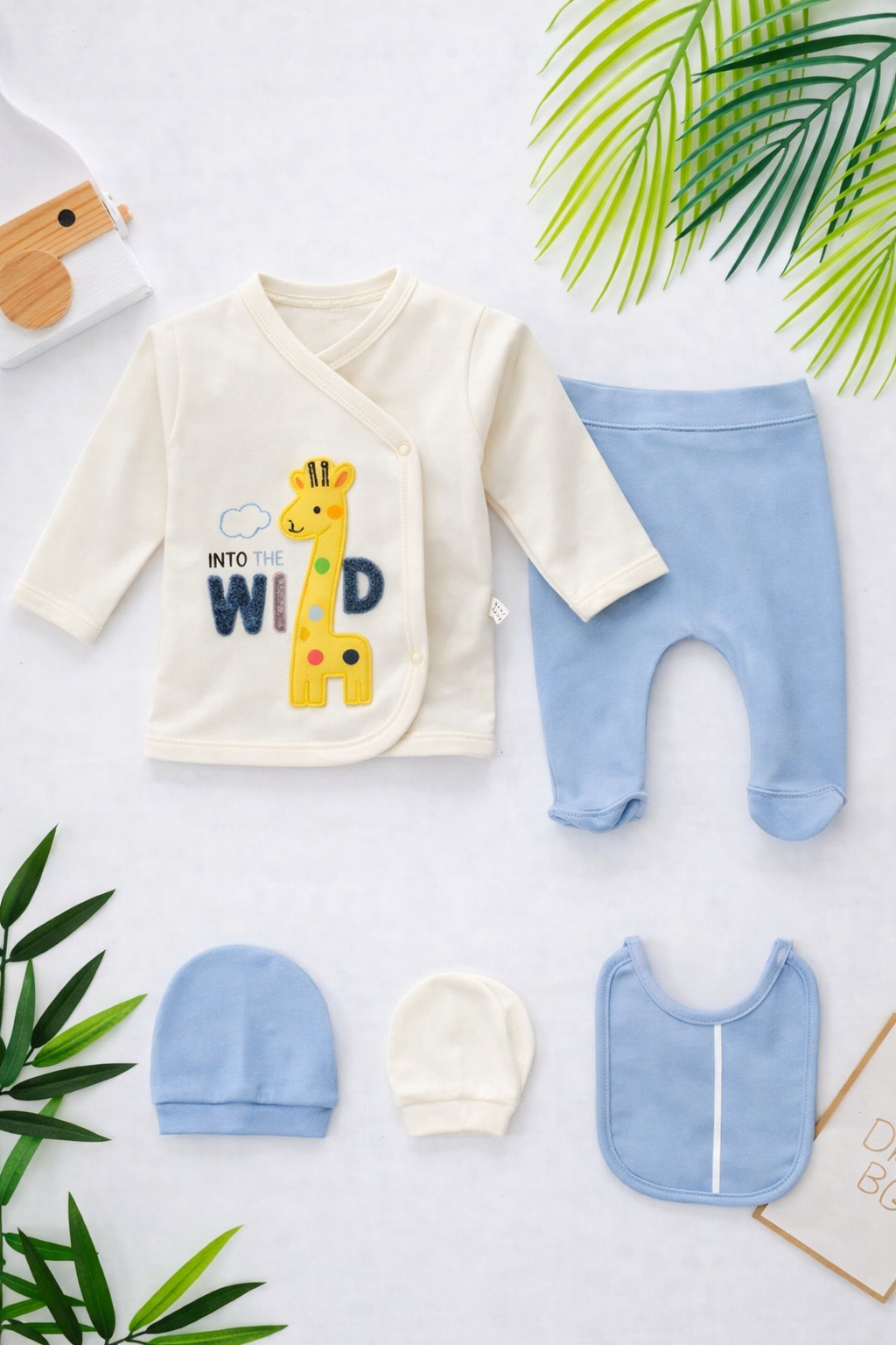 طقم مواليد أنيق ومتكامل 5 قطع بتصميم الزرافة اللطيف طقم مواليد أنيق ومتكامل 5 قطع بتصميم الزرافة اللطيف