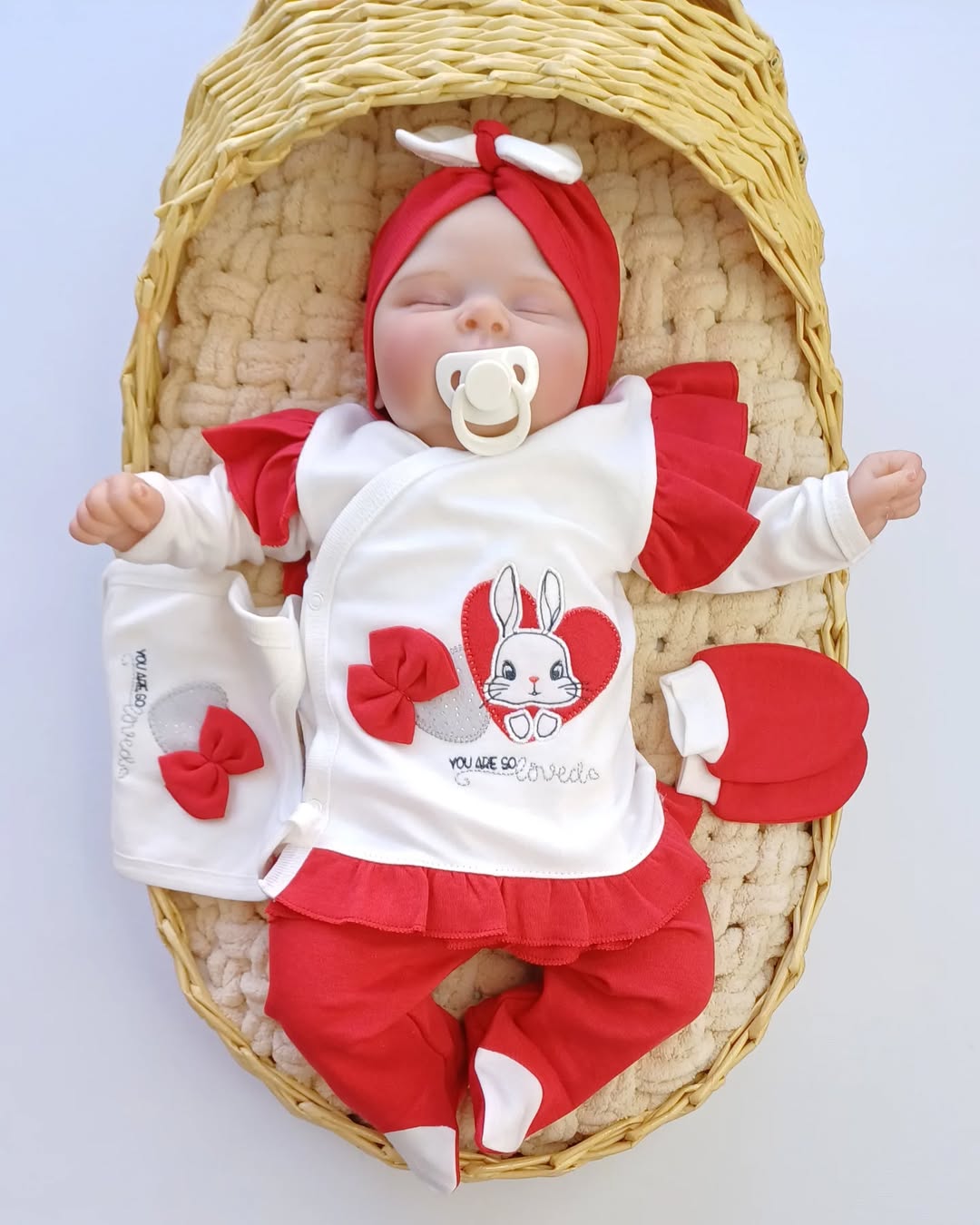 طقم بيبي بنوتة 5 قطع - تصميم أرنب لطيف