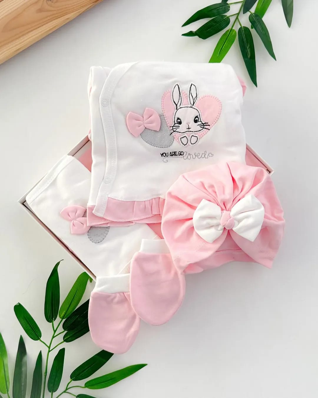 • طقم بيبي بنوتة 5 قطع - تصميم أرنب لطيف