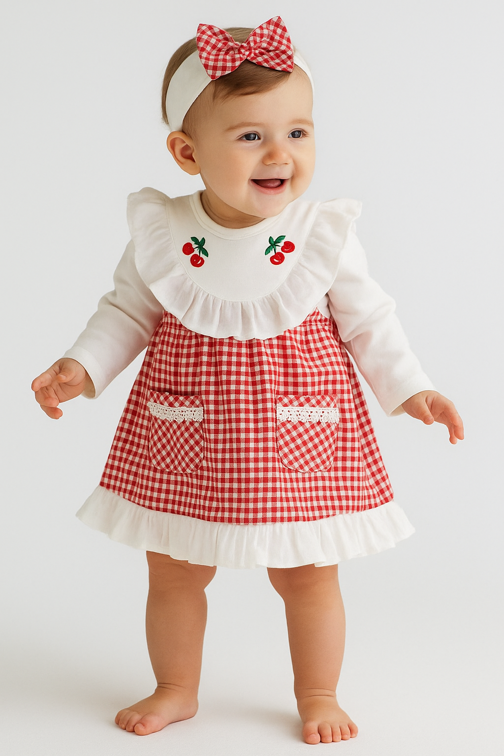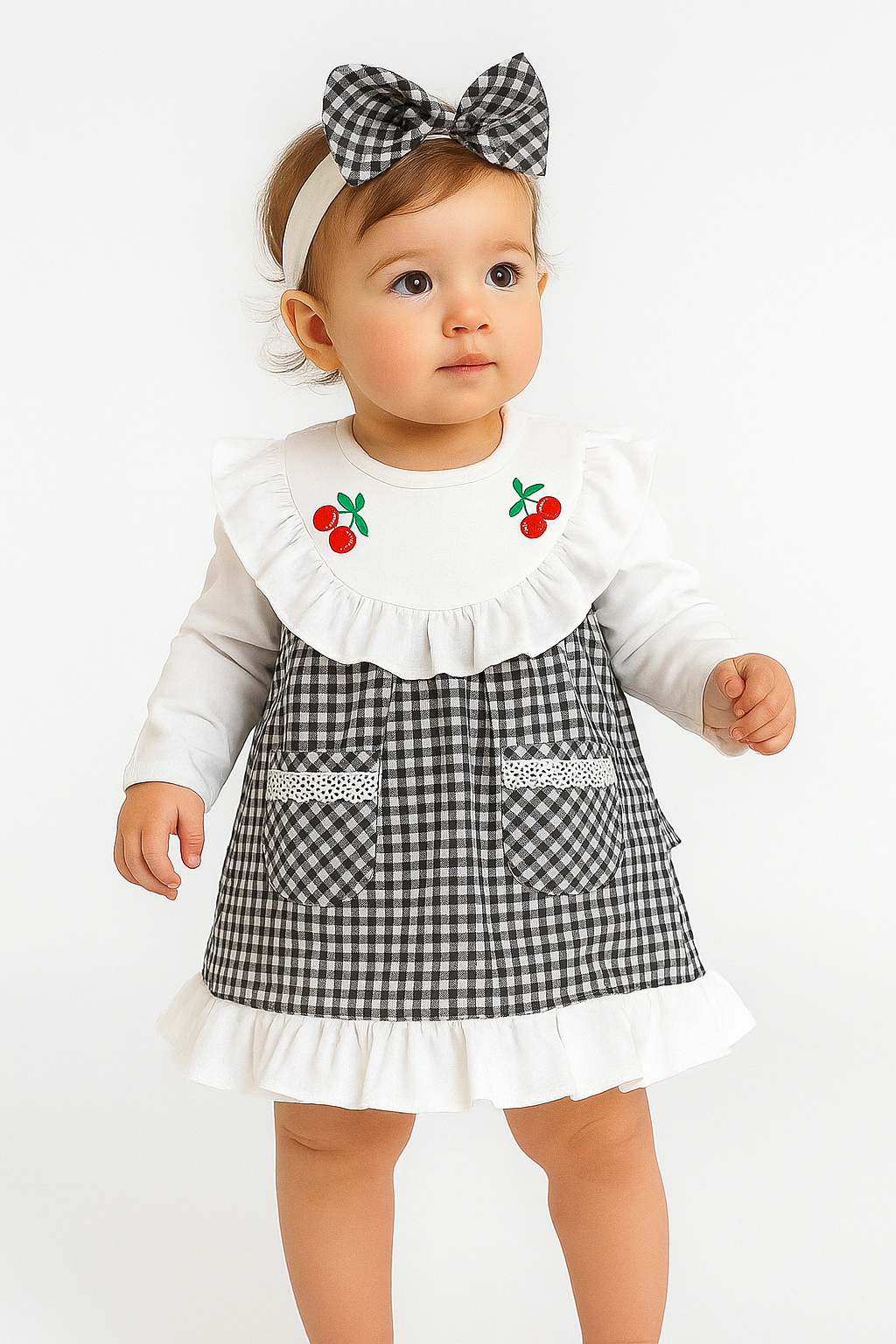 فستان مزين بتطريزات الكرز مع الباندانا فستان مزين بتطريزات الكرز مع الباندانا